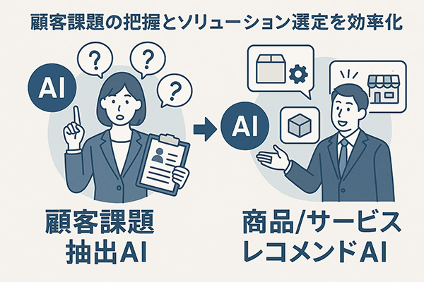 本展示では、効率的な顧客課題の把握を支援する「顧客課題抽出AI」と、顧客にとって最適なソリューションの選定を支援する「商品/サービスレコメンドAI」を中心に紹介します。