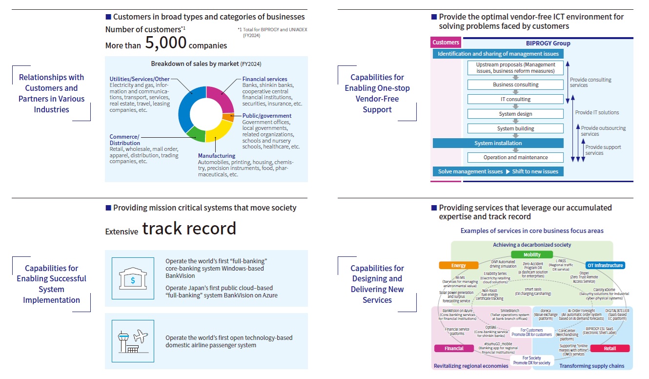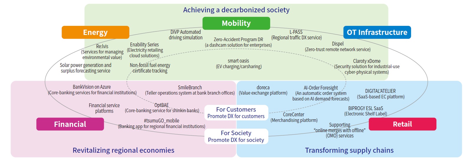 The Group has earnestly collaborated with customers in all industries to solve their issues, which has made it possible for us to accumulate experience and knowledge based on our familiarity with their operations. By stitching together in a patchwork fashion various assets such as the knowledge we have acquired working with customers and the assets obtained through the solutions we have independently developed, open innovation, the pursuit of knowledge and other companies’ products, and by reworking these assets into an optimal form while obtaining additional wisdom from our customers, we will work to enrich our unique, flexible business platform layer. At the same time, we would like to increase, in the long term, service contexts that are appealing to customers by generalizing the experience and knowledge from individual projects into a form applicable to multiple customers and compiling that into a library.
