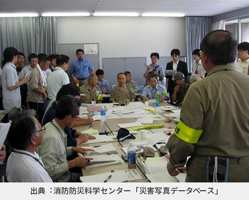 大混乱の中、スピーディかつ正確な被害情報の収集と報告を行い、意思決定者の判断・指示を引き出し、さらに具体的な対応を推進しなければなりません。しかし、この段階になると、電話・メール、はたまた戦国時代のような伝令係による情報伝達を行い、またそれらの情報はホワイトボードが真っ黒になるまで記録し、さらに模造紙を壁一面に張り出した状況で、「さあ30分後に災害対策本部会議だ」といった、非常にアナログな対応に終始しているのが一般的です。