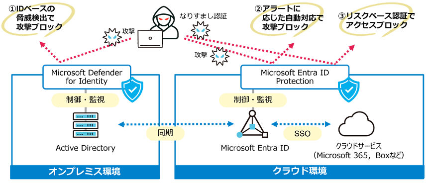 - ※Microsoft、Microsoft 365、Microsoft Entra ID、Microsoft Defender for Identity、Microsoft Entra ID Protectionは、米国Microsoft Corporationの米国およびその他の国における登録商標または商標です。