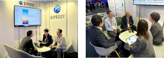 BIPROGYは、Sibosにて初めてブースを出展しました。ブースでは商談エリアを広めに設け、事前アポイントや当日の立ち寄りを含め、4日間で30社以上の企業と意見交換を行いました。