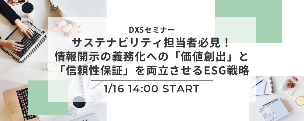 【DXSセミナー】 サステナビリティ担当者必見!情報開示の義務化への「価値創出」と「信頼性保証」を両立させるESG戦略