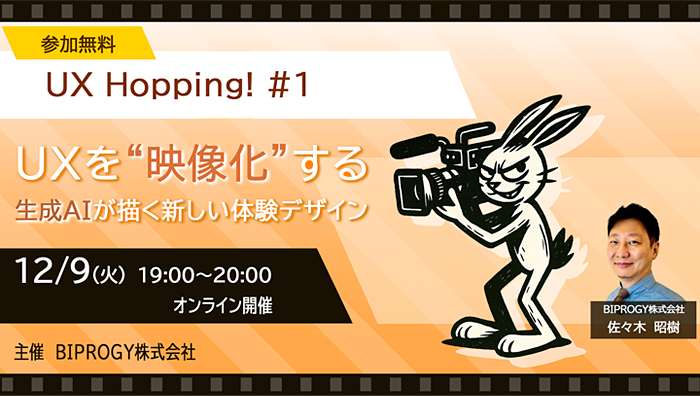 【UI/UXセミナー】UX Hopping! #1 UXを“映像化”する:生成AIが描く新しい体験デザイン(2025年12月9日(火)19:00~20:00)