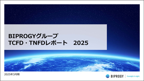 BIPROGYグループは、「環境長期ビジョン2050」のもと、ゼロエミッション社会の実現を目指し、「気候関連財務情報開示タスクフォース(TCFD)」および「自然関連財務情報開示タスクフォース(TNFD)」への賛同を表明し、取り組みを強化しています。