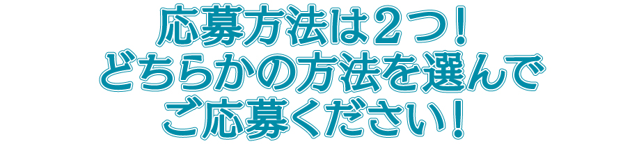 ご応募はお一人様1 回限りとなります。応募方法1・応募方法2よりご都合のよい応募方法を選んでご応募ください。